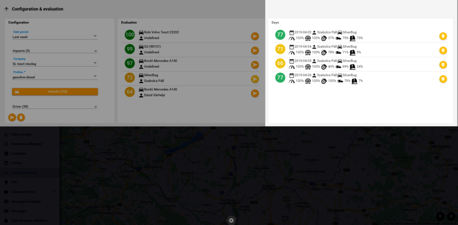 Our users can analyze their drivers' driving style, and the drivers' compliance with traffic regulations within a pre-defined time interval.
