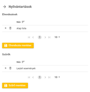 A korábban - a konfigurációs panelen - elmentett listaelrendezéseket és szűrőket a panel vezérlőit használva lehet kiválasztani, módosítani, illetve törölni.
